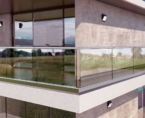La baranda de uso doméstico viene en dos versiones, de Cristal templado monolíticode 10 o 12 mm. El modelo de uso comercial medio cuenta con un cristal templado y laminado de 6 mm. + 6 mm para una mayor resistencia.