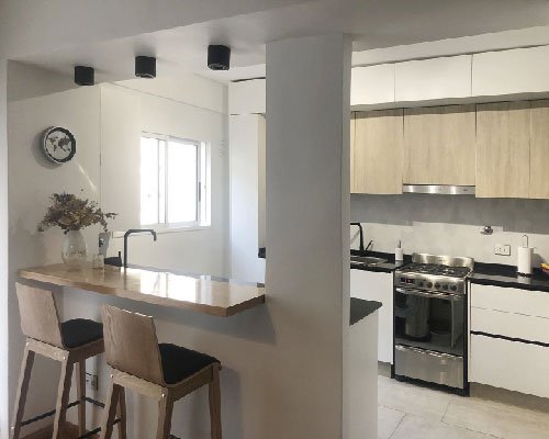 El estudio fue convocado para realizar los muebles de cocina a medida de una vivienda a estrenar en Martínez.